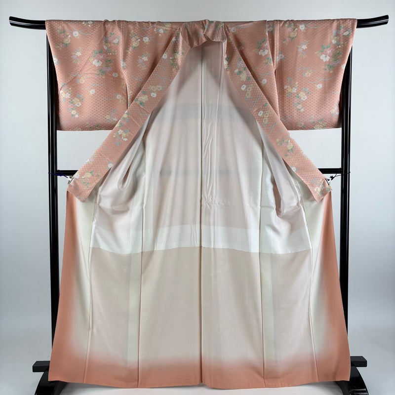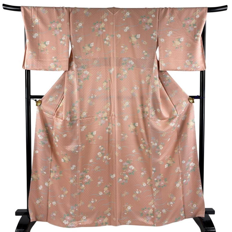 【小紋】 赤系 薄ピンク 秀品 A 約160cm~約169cm 裄丈69cm以上 (L)size 袖丈49cm 7990-9980 美品 二万以下