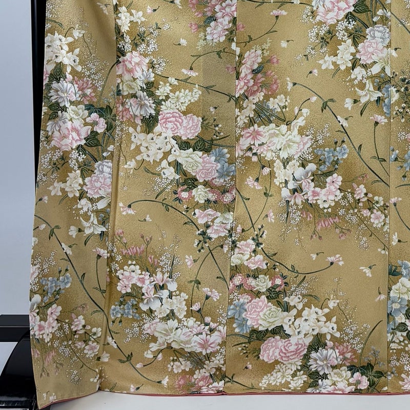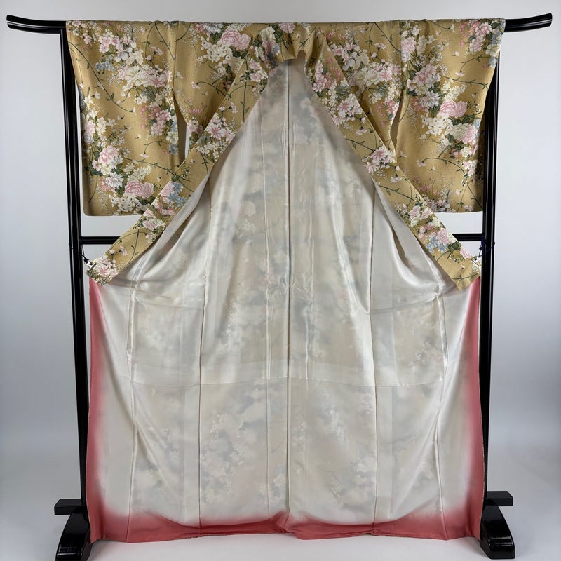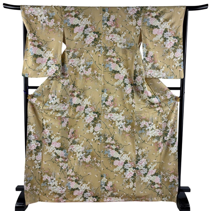 【着物ランク】秀品 【素材】正絹 【身丈】約171cm 【裄丈】約68cm 【袖丈】約60.5cm 【袖幅】約34.5cm 【前幅】約24cm 【後幅】約30cm 【サイズ】L 【着物仕立て】袷 【着用時期】10~5月 【状態ランク】ランクB 【着物着用シーン】気軽なパーティー、観劇、食事会、正月、気軽なお茶会、街着