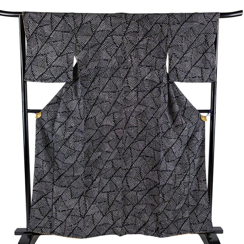 【小紋】 黒系 黒 秀品 B 約160cm~約169cm 裄丈67cm-68cm (M)size 袖丈48cm 4000-7980 二万以下