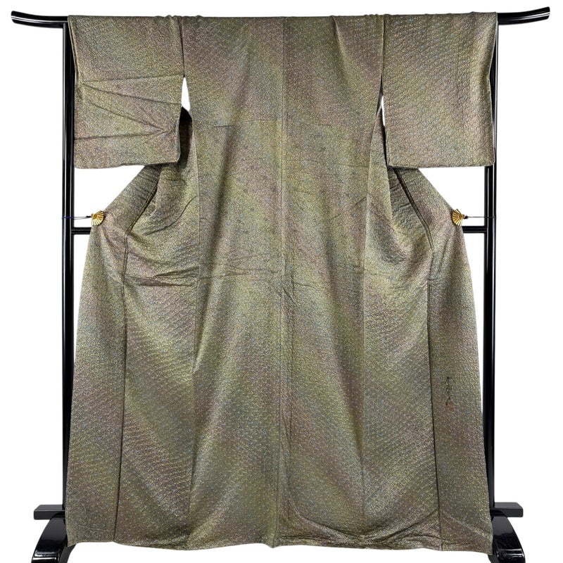 【小紋】 灰色系 灰緑 秀品 B 約160cm~約169cm 裄丈67cm-68cm (L)size 袖丈49cm 4000-7980 二万以下