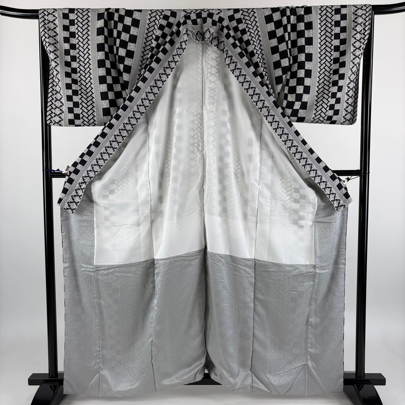 【小紋】 灰色系 黒灰 秀品 B 約160cm~約169cm 裄丈67cm-68cm (L)size 袖丈48cm 4000-7980 二万以下