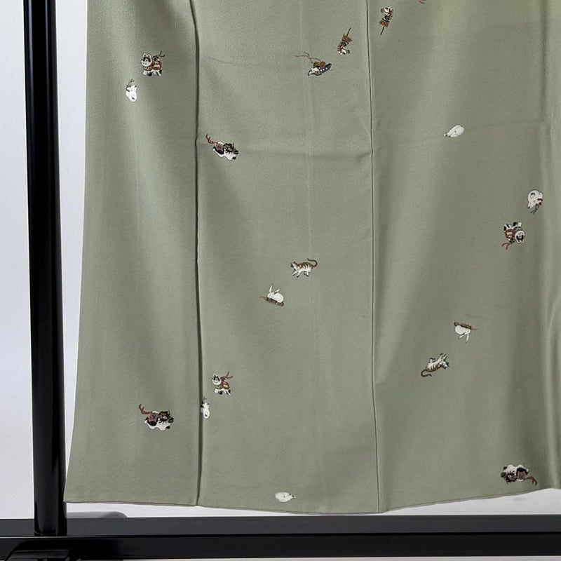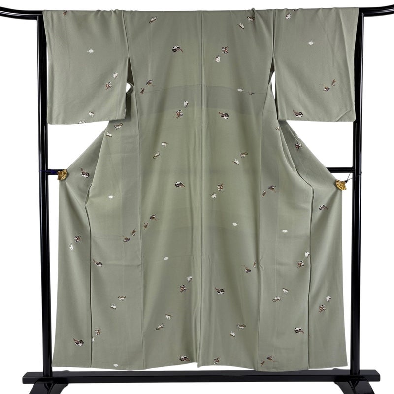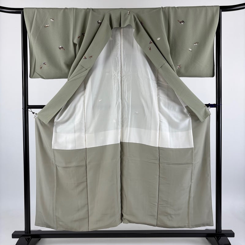 【小紋】 灰色系 灰緑 秀品 C 約150cm~約159cm 裄丈66cm (M)size 袖丈48cm 4000-7980 二万以下