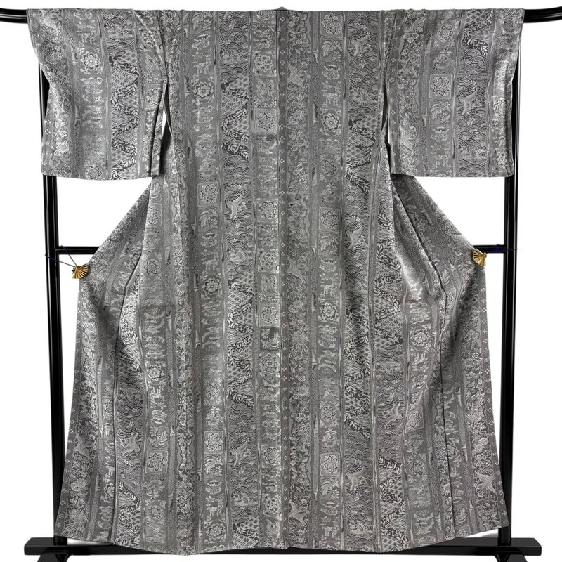 【小紋】 灰色系 灰色 名品 B 約150cm~約159cm 裄丈67cm-68cm (L)size 袖丈48cm 9990-29990 二万以下