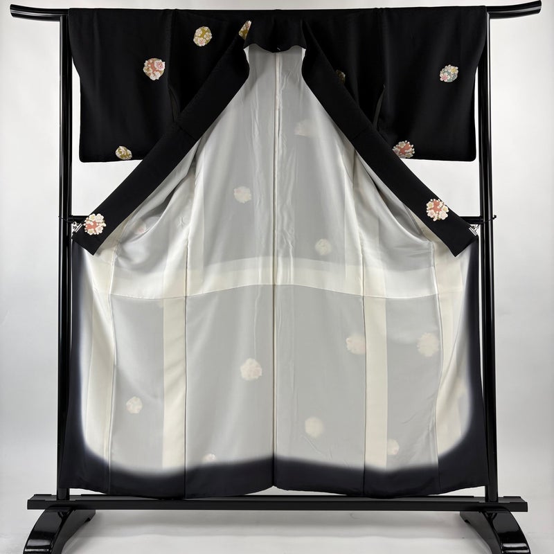 【小紋】 黒系 黒 名品 A 約150cm~約159cm 裄丈65cm (M)size 袖丈49cm 9990-29990 美品 二万以下