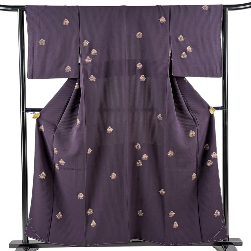 【小紋】 紫系 濃紫 秀品 A 約150cm~約159cm 裄丈63cm-64cm (M)size 袖丈48cm 7990-9980 美品 二万以下