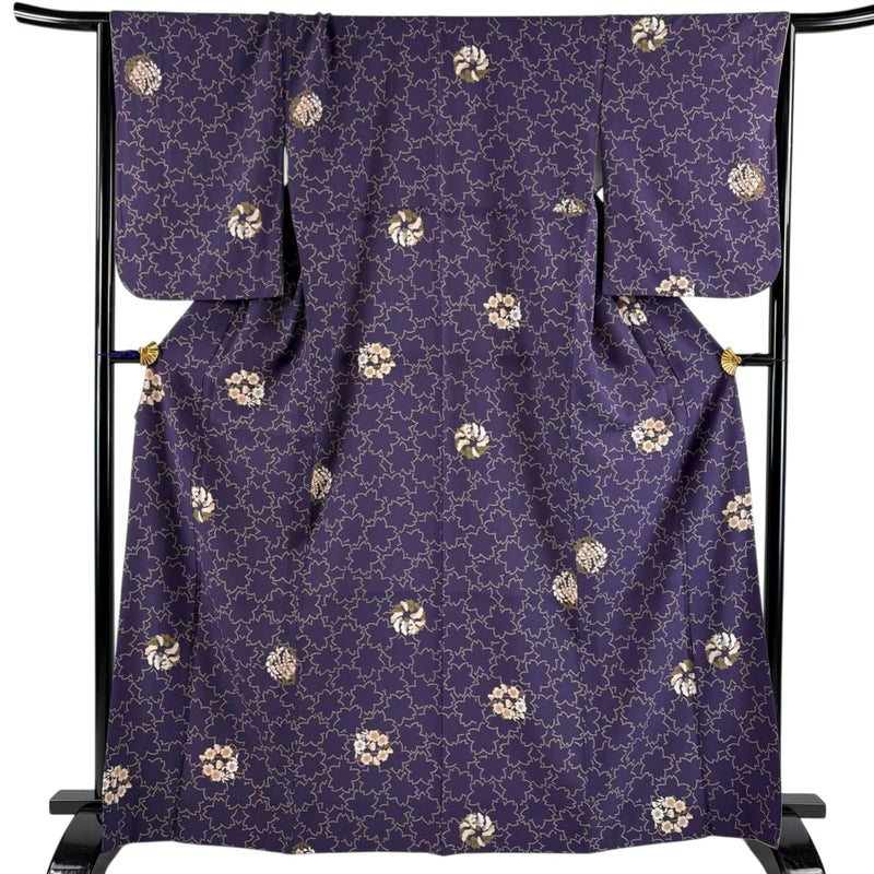 【小紋】 紫系 紫 秀品 A 約160cm~約169cm 裄丈67cm-68cm (M)size 袖丈50cm-60cm 7990-9980 美品 二万以下