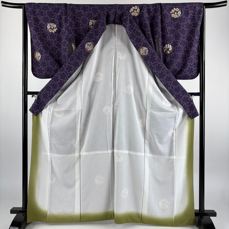 【着物ランク】秀品 【素材】化繊 【身丈】約166cm 【裄丈】約67cm 【袖丈】約57cm 【袖幅】約34.5cm 【前幅】約24.5cm 【後幅】約30cm 【サイズ】M 【着物仕立て】袷 【着用時期】10~5月 【状態ランク】ランクA 【着物着用シーン】気軽なパーティー、観劇、食事会、正月、気軽なお茶会、街着