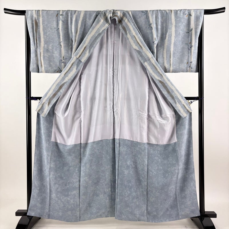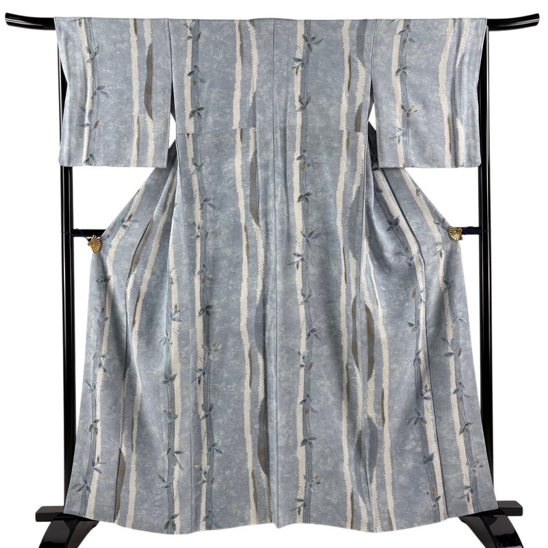 【着物ランク】名品 【素材】正絹 【身丈】約161cm 【裄丈】約64cm 【袖丈】約48cm 【袖幅】約35cm 【前幅】約25cm 【後幅】約30.5cm 【サイズ】M 【着物仕立て】袷 【着用時期】10~5月 【状態ランク】ランクB 【着物着用シーン】気軽なパーティー、観劇、食事会、正月、気軽なお茶会、街着