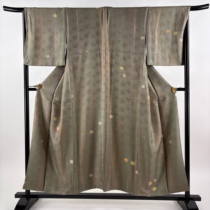 【小紋】 灰色系 灰緑 秀品 B 約150cm~約159cm 裄丈67cm-68cm (L)size 袖丈48cm 4000-7980 二万以下