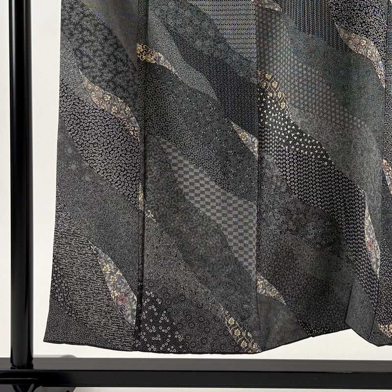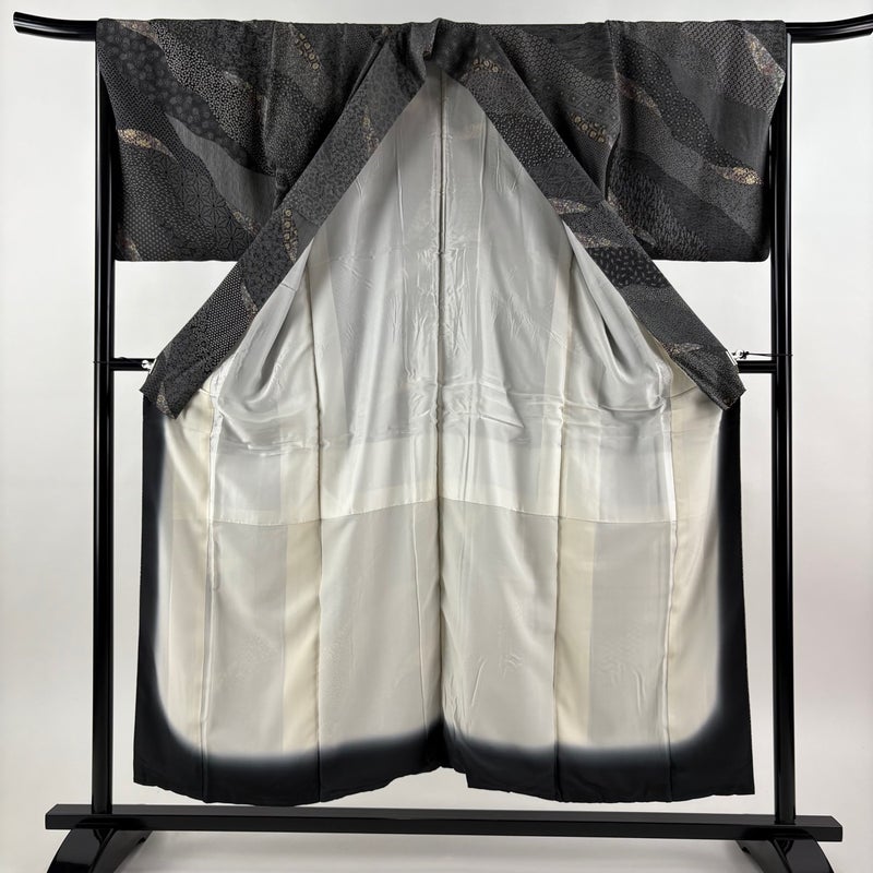 【小紋】 黒系 黒 秀品 A 約150cm~約159cm 裄丈66cm (M)size 袖丈47cm 7990-9980 美品 二万以下