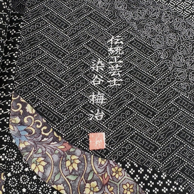 【着物ランク】秀品 【素材】正絹 【身丈】約152cm 【裄丈】約66cm 【袖丈】約47.5cm 【袖幅】約34.5cm 【前幅】約22.5cm 【後幅】約28cm 【サイズ】M 【着物仕立て】袷 【着用時期】10~5月 【状態ランク】ランクA 【作家名】染谷梅治 【着物着用シーン】気軽なパーティー、観劇、食事会、正月、気軽なお茶会、街着