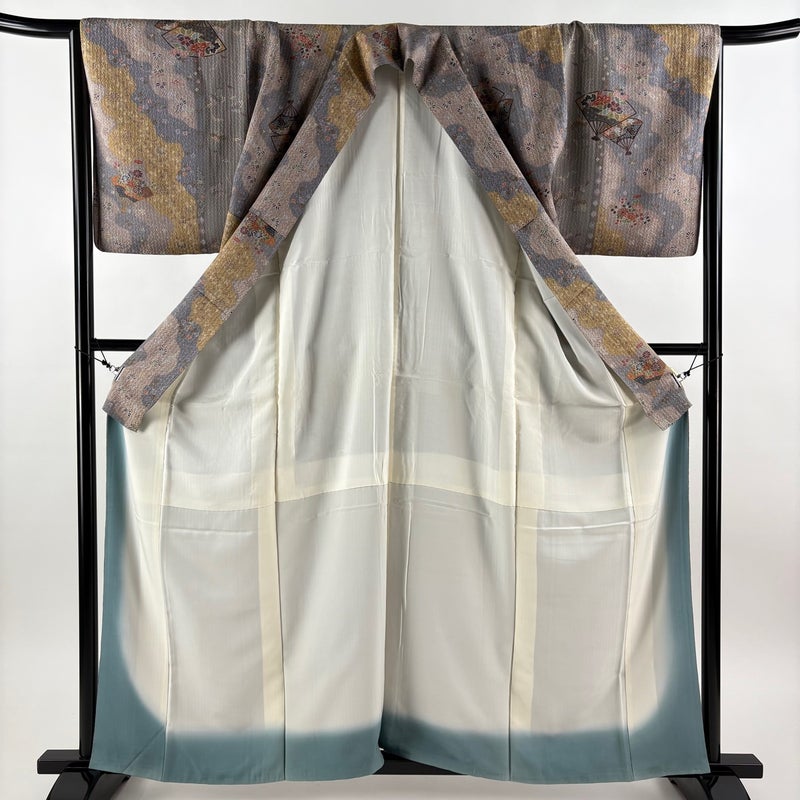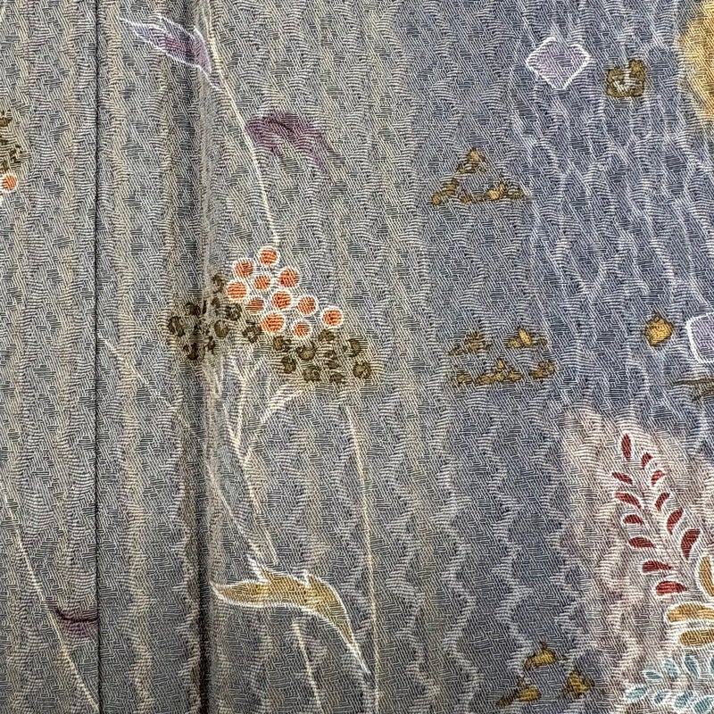 【着物ランク】秀品 【素材】正絹 【身丈】約161cm 【裄丈】約67cm 【袖丈】約48.5cm 【袖幅】約34cm 【前幅】約26cm 【後幅】約31cm 【サイズ】M 【着物仕立て】袷 【着用時期】10~5月 【状態ランク】ランクB 【着物着用シーン】気軽なパーティー、観劇、食事会、正月、気軽なお茶会、街着