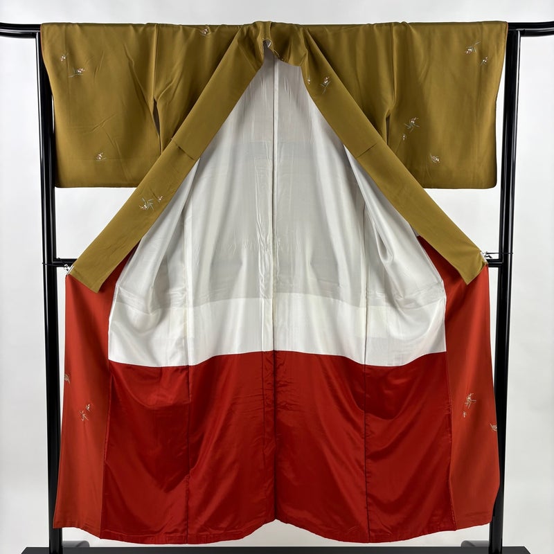 【着物ランク】秀品 【素材】正絹 【身丈】約152cm 【裄丈】約64.5cm 【袖丈】約46.5cm 【袖幅】約32.5cm 【前幅】約26cm 【後幅】約31cm 【サイズ】M 【着物仕立て】袷 【着用時期】10~5月 【状態ランク】ランクB 【着物着用シーン】気軽なパーティー、観劇、食事会、正月、気軽なお茶会、街着