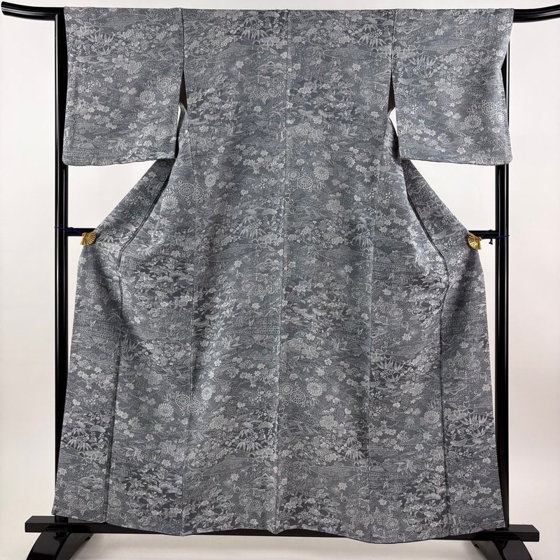 【小紋】 灰色系 青灰色 逸品 B 約160cm~約169cm 裄丈66cm (M)size 袖丈48cm 30000- 五万以下
