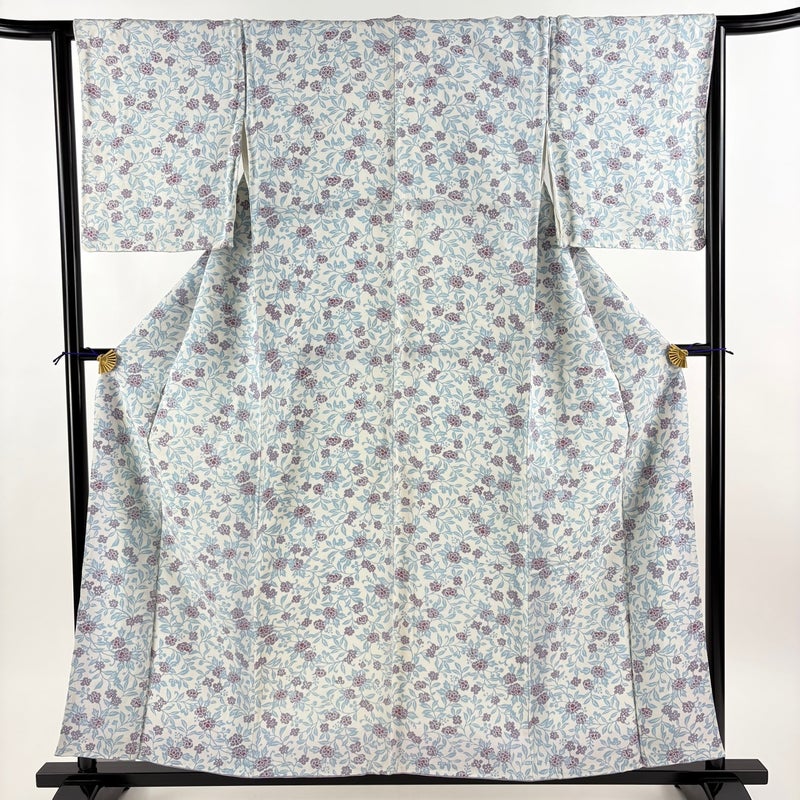 【着物ランク】秀品 【素材】正絹 【身丈】約157cm 【裄丈】約65.5cm 【袖丈】約48cm 【袖幅】約33.5cm 【前幅】約24.5cm 【後幅】約30.5cm 【サイズ】M 【着物仕立て】袷 【着用時期】10~5月 【状態ランク】ランクB 【着物着用シーン】気軽なパーティー、観劇、食事会、正月、気軽なお茶会、街着
