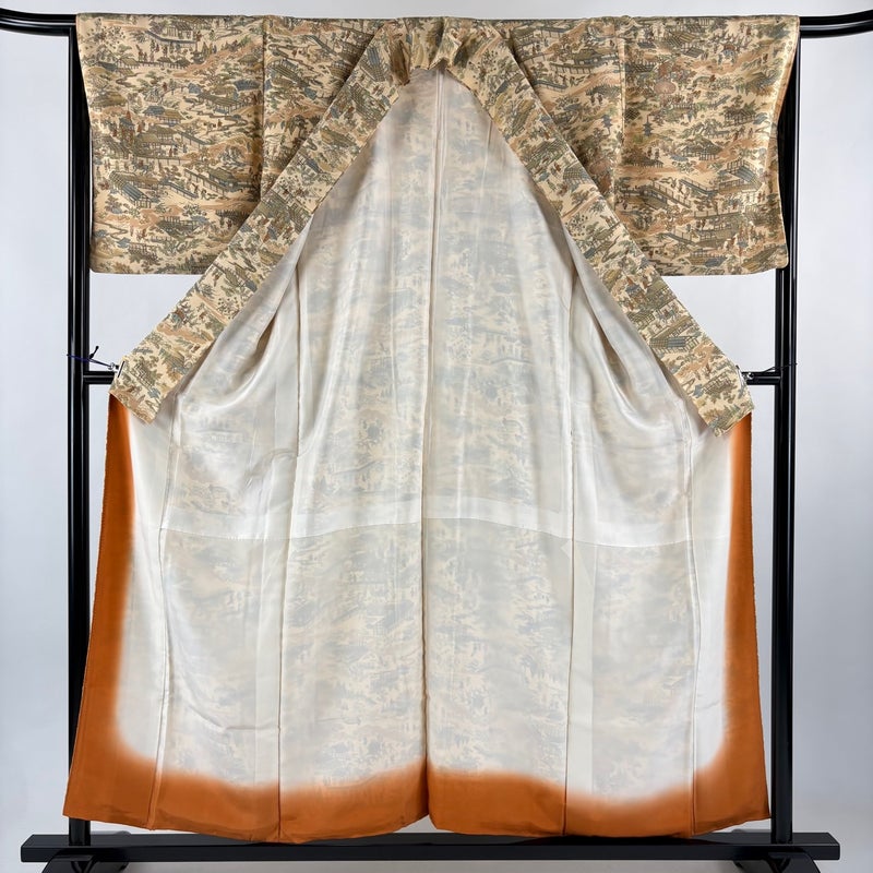 【着物ランク】優品 【素材】正絹 【身丈】約156cm 【裄丈】約65.5cm 【袖丈】約48cm 【袖幅】約34cm 【前幅】約25cm 【後幅】約30cm 【サイズ】M 【着物仕立て】袷 【着用時期】10~5月 【状態ランク】ランクA 【着物着用シーン】気軽なパーティー、観劇、食事会、正月、気軽なお茶会、街着