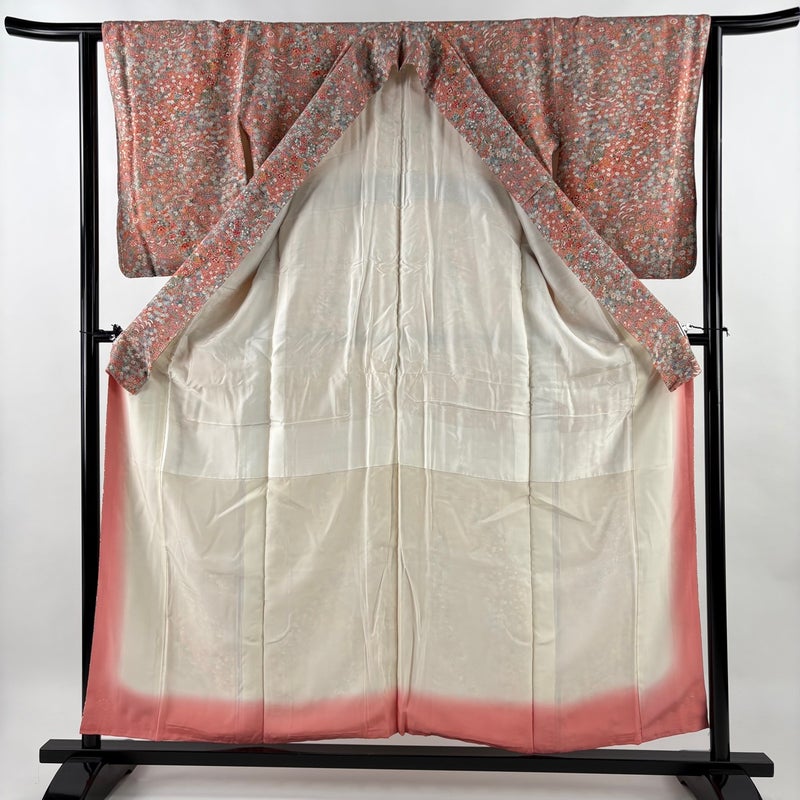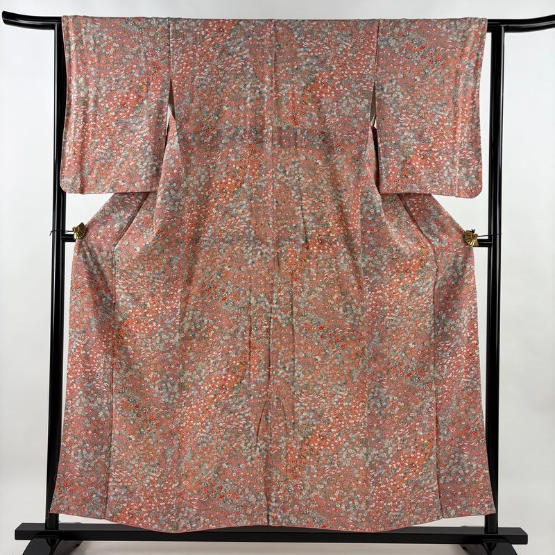 【小紋】 赤系 ピンクベージュ 優品 A 約150cm~約159cm 裄丈63cm-64cm (S)size 袖丈50cm-60cm 4000-7980 美品 二万以下