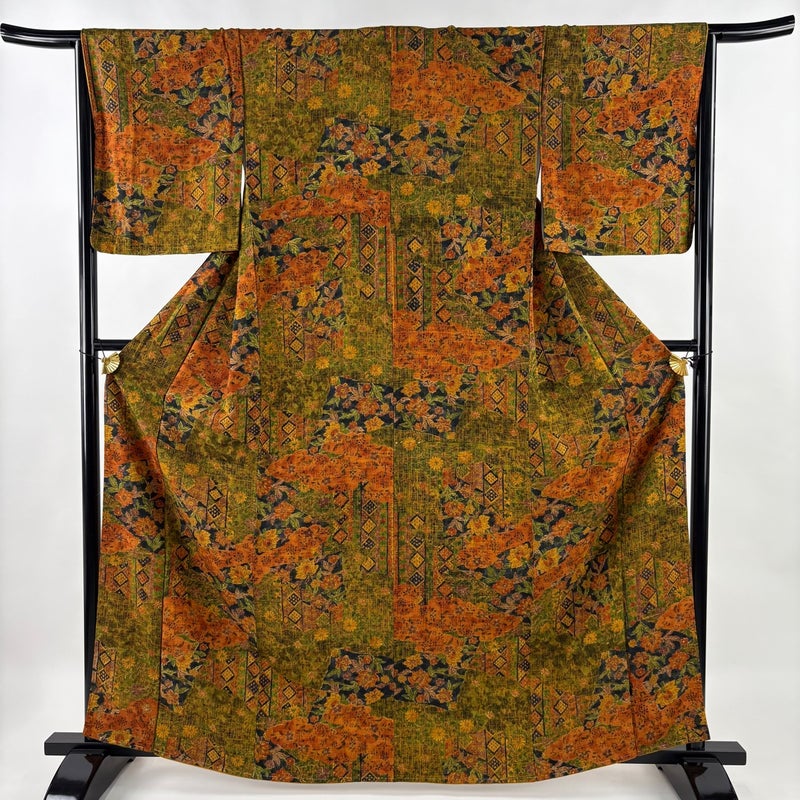 【小紋】 緑系 鶯色 優品 A 約160cm~約169cm 裄丈66cm (M)size 袖丈47cm 4000-7980 美品 二万以下