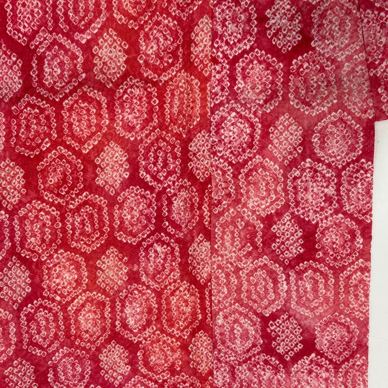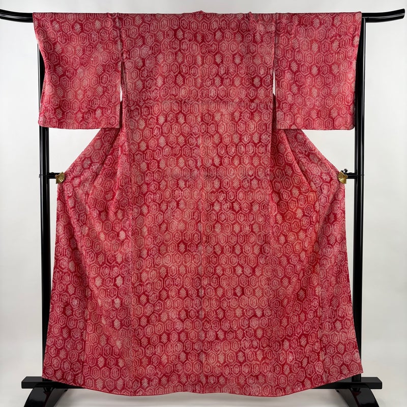 【小紋】 赤系 濃ピンク 優品 B 約150cm~約159cm 裄丈67cm-68cm (L)size 袖丈49cm -3980 二万以下