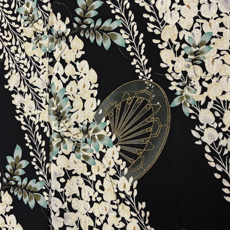 【着物ランク】優品 【素材】正絹 【身丈】約166cm 【裄丈】約67.5cm 【袖丈】約56cm 【袖幅】約35.5cm 【前幅】約23cm 【後幅】約29.5cm 【サイズ】L 【着物仕立て】袷 【着用時期】10~5月 【状態ランク】ランクA 【着物着用シーン】気軽なパーティー、観劇、食事会、正月、気軽なお茶会、街着