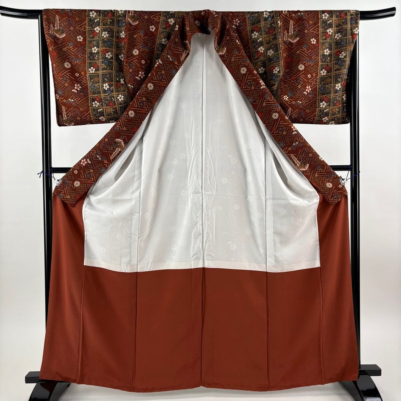 【小紋】 赤系 赤茶 秀品 A 約160cm~約169cm 裄丈66cm (M)size 袖丈49cm 7990-9980 美品 二万以下