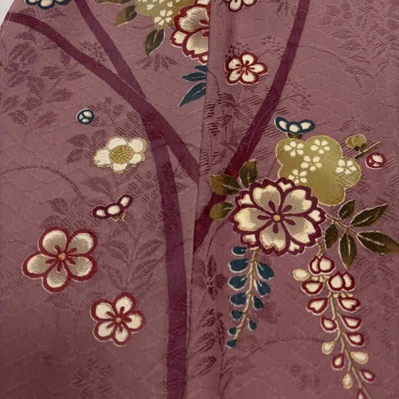 【着物ランク】秀品 【素材】正絹 【身丈】約158cm 【裄丈】約66.5cm 【袖丈】約48cm 【袖幅】約35cm 【前幅】約24cm 【後幅】約30cm 【サイズ】M 【着物仕立て】袷 【着用時期】10~5月 【状態ランク】ランクB 【着物着用シーン】気軽なパーティー、観劇、食事会、正月、気軽なお茶会、街着