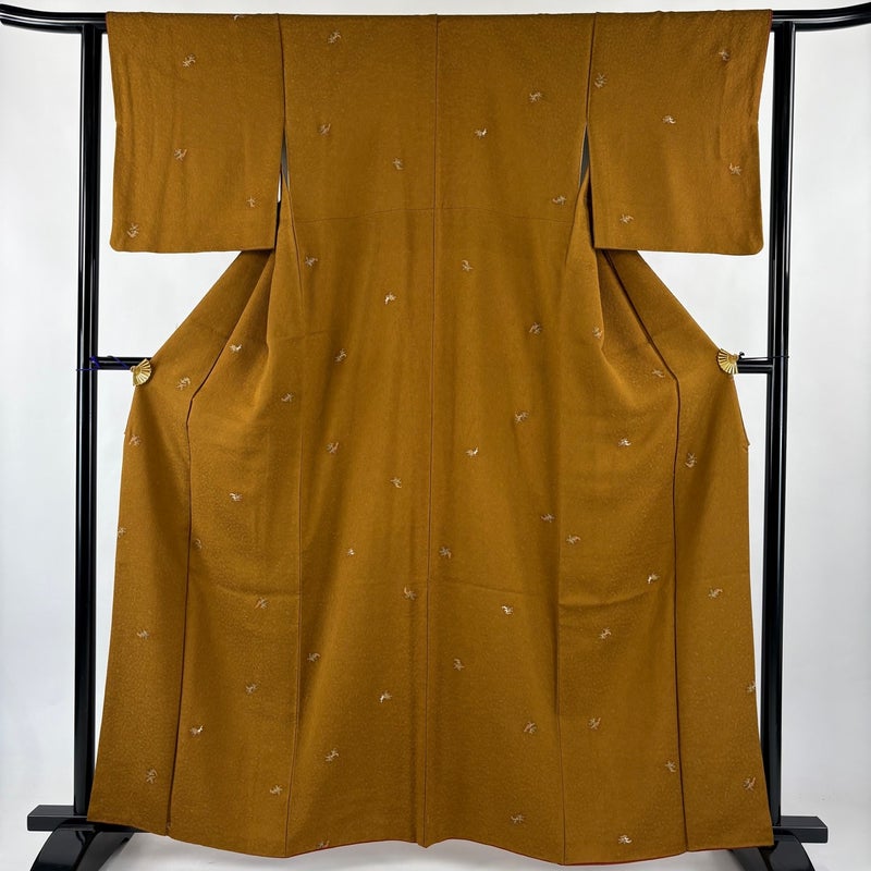 【小紋】 黄色系 山吹茶色 秀品 B 約160cm~約169cm 裄丈62cm以下 (S)size 袖丈46cm以下 4000-7980 二万以下