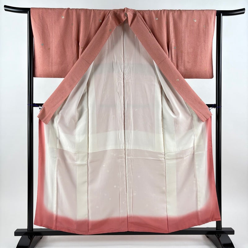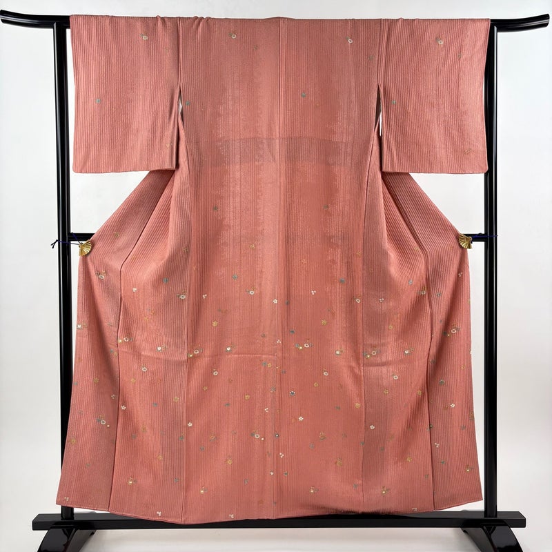 【小紋】 赤系 サーモンピンク 秀品 C 約150cm~約159cm 裄丈63cm-64cm (M)size 袖丈49cm 4000-7980 二万以下