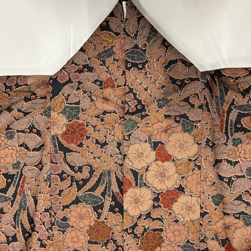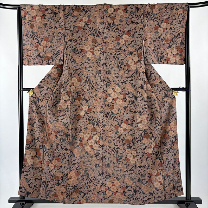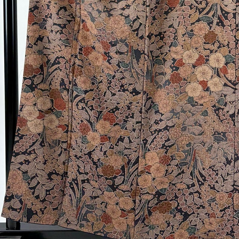 【着物ランク】秀品 【素材】正絹 【身丈】約157.5cm 【裄丈】約65cm 【袖丈】約48cm 【袖幅】約34cm 【前幅】約22.5cm 【後幅】約28.5cm 【サイズ】M 【着物仕立て】袷 【着用時期】10~5月 【状態ランク】ランクB 【着物着用シーン】気軽なパーティー、観劇、食事会、正月、気軽なお茶会、街着