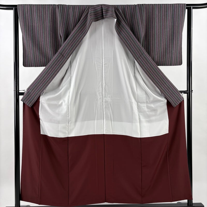 【着物ランク】秀品 【素材】化繊 【身丈】約156cm 【裄丈】約62cm 【袖丈】約47cm 【袖幅】約32.5cm 【前幅】約22.5cm 【後幅】約28.5cm 【サイズ】S 【着物仕立て】袷 【着用時期】10~5月 【状態ランク】ランクB 【着物着用シーン】気軽なパーティー、観劇、食事会、正月、気軽なお茶会、街着