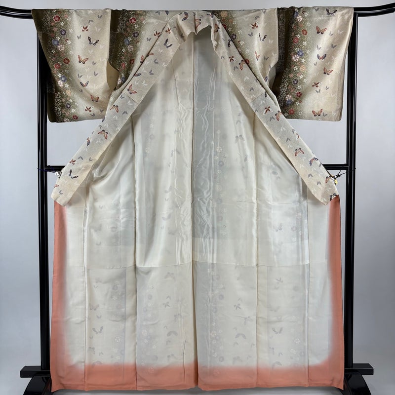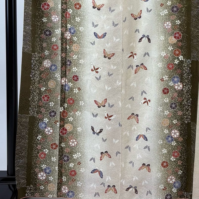 【着物ランク】秀品 【素材】正絹 【身丈】約165.5cm 【裄丈】約67.5cm 【袖丈】約48cm 【袖幅】約33.5cm 【前幅】約22.5cm 【後幅】約30cm 【サイズ】L 【着物仕立て】袷 【着用時期】10~5月 【状態ランク】ランクA 【着物着用シーン】気軽なパーティー、観劇、食事会、正月、気軽なお茶会、街着