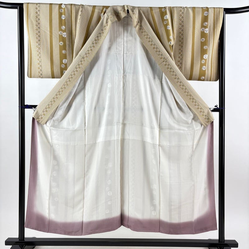 【着物ランク】秀品 【素材】正絹 【身丈】約155cm 【裄丈】約64cm 【袖丈】約48.5cm 【袖幅】約33cm 【前幅】約22.5cm 【後幅】約29.5cm 【サイズ】M 【着物仕立て】袷 【着用時期】10~5月 【状態ランク】ランクA 【着物着用シーン】気軽なパーティー、観劇、食事会、正月、気軽なお茶会、街着