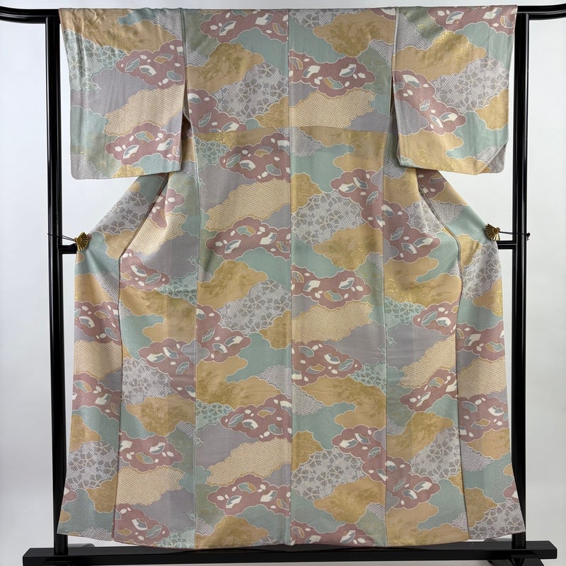 【着物ランク】名品 【素材】正絹 【身丈】約156.5cm 【裄丈】約62.5cm 【袖丈】約48cm 【袖幅】約33cm 【前幅】約24cm 【後幅】約28cm 【サイズ】S 【着物仕立て】袷 【着用時期】10~5月 【状態ランク】ランクB 【着物着用シーン】気軽なパーティー、観劇、食事会、正月、気軽なお茶会、街着