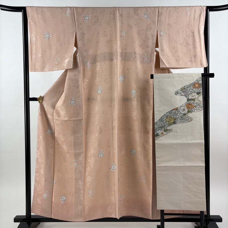 【着物ランク】秀品 【素材】正絹 【身丈】約157cm 【裄丈】約64.5cm 【袖丈】約48.5cm 【袖幅】約33.5cm 【前幅】約24cm 【後幅】約29cm 【サイズ】M 【着物仕立て】袷 【着用時期】10~5月 【帯丈2】約361.5cm 【帯幅2】約31.5cm 【状態ランク】ランクA 【着物着用シーン】気軽なパーティー、観劇、食事会、正月、気軽なお茶会、街着