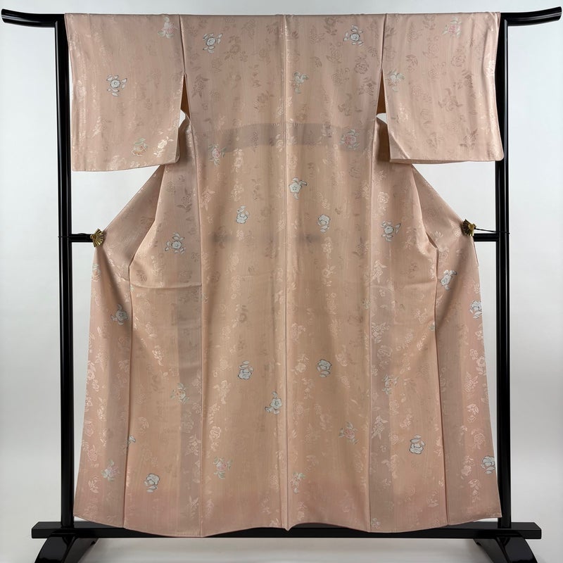 【小紋】 赤系 薄ピンク 秀品 A 約150cm~約159cm 裄丈63cm-64cm (M)size 袖丈48cm 9990-29990 美品 五万以下