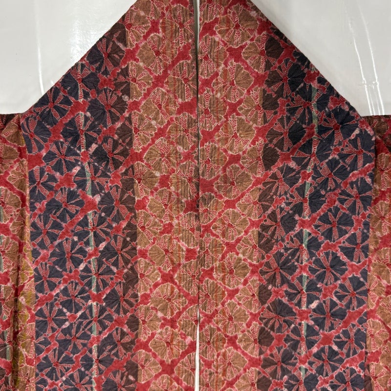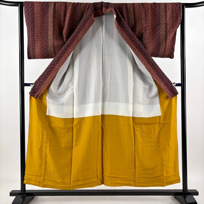 【着物ランク】名品 【素材】正絹 【身丈】約154cm 【裄丈】約63cm 【袖丈】約46cm 【袖幅】約32.5cm 【前幅】約23cm 【後幅】約28.5cm 【サイズ】S 【着物仕立て】袷 【着用時期】10~5月 【状態ランク】ランクA 【着物着用シーン】気軽なパーティー、観劇、食事会、正月、気軽なお茶会、街着