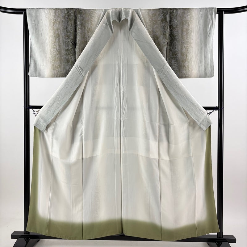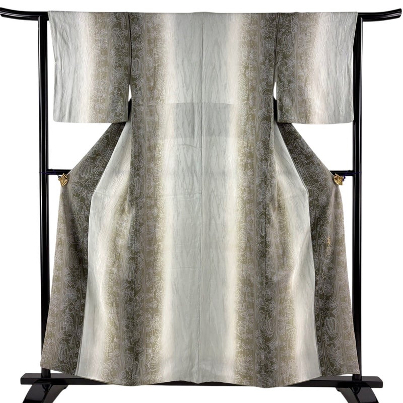 【着物ランク】名品 【素材】正絹 【身丈】約156cm 【裄丈】約63cm 【袖丈】約47cm 【袖幅】約33.5cm 【前幅】約24.5cm 【後幅】約29cm 【サイズ】S 【着物仕立て】袷 【着用時期】10~5月 【状態ランク】ランクA 【作家名】大久保玄才 【着物着用シーン】気軽なパーティー、観劇、食事会、正月、気軽なお茶会、街着