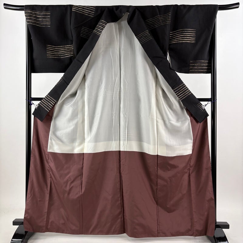 【小紋】 黒系 黒 名品 A 約160cm~約169cm 裄丈67cm-68cm (L)size 袖丈49cm 9990-29990 美品 二万以下