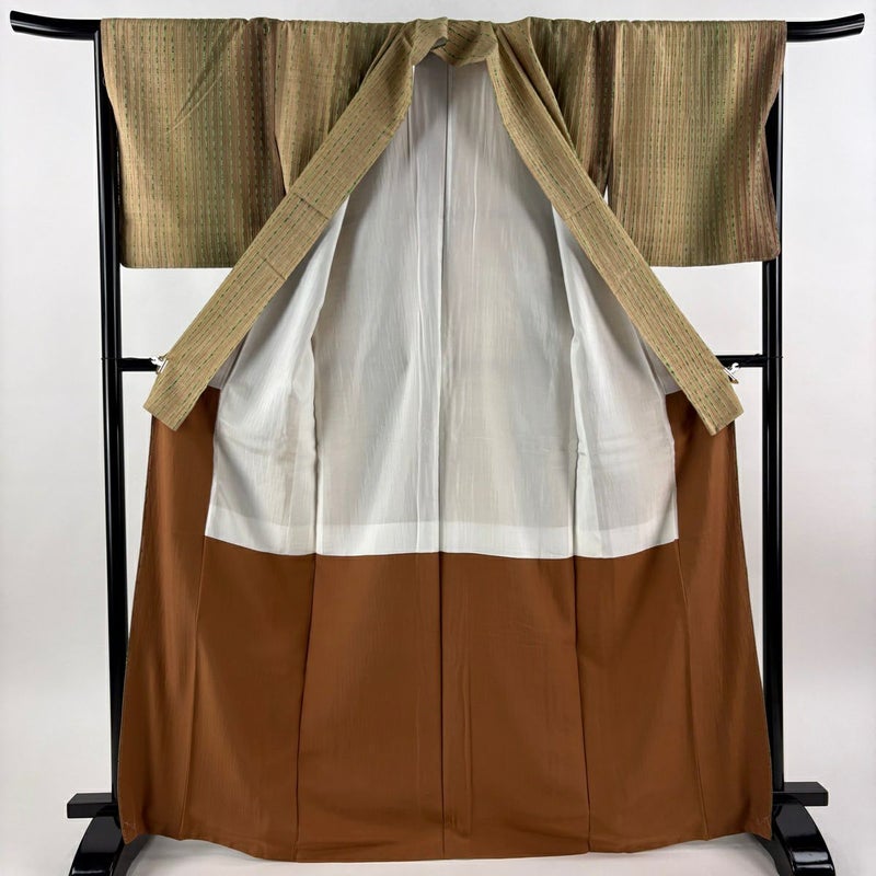 【小紋】 茶系 薄茶色 秀品 A 約160cm~約169cm 裄丈67cm-68cm (L)size 袖丈48cm 9990-29990 美品 五万以下
