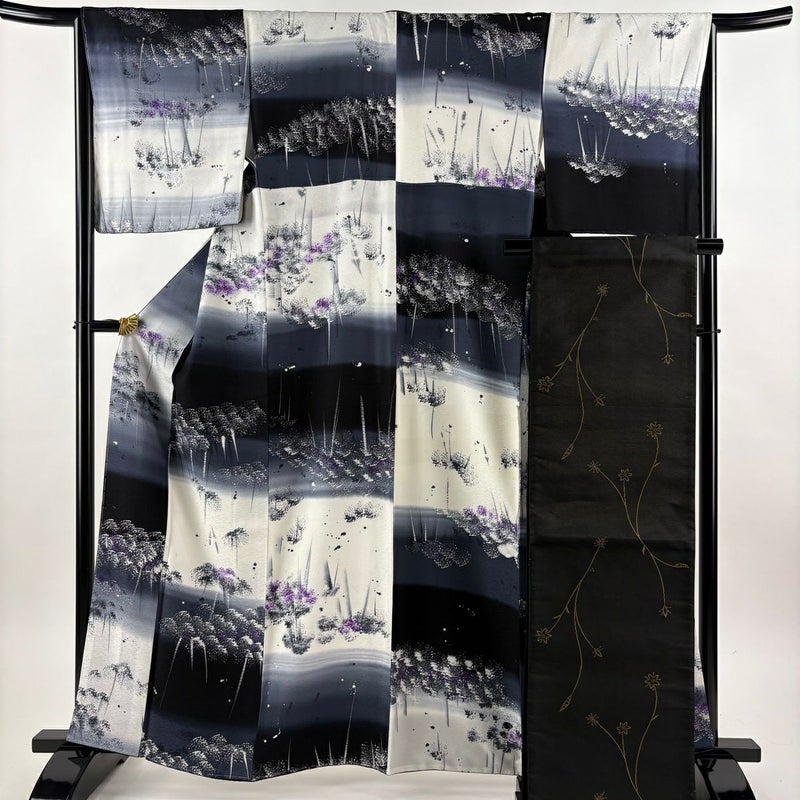 【着物ランク】秀品 【素材】正絹 【身丈】約161.5cm 【裄丈】約66cm 【袖丈】約48cm 【袖幅】約33cm 【前幅】約24.5cm 【後幅】約29.5cm 【サイズ】M 【着物仕立て】袷 【着用時期】10~5月 【帯丈2】約446cm 【帯幅2】約31cm 【状態ランク】ランクA 【着物着用シーン】気軽なパーティー、観劇、食事会、正月、気軽なお茶会、街着