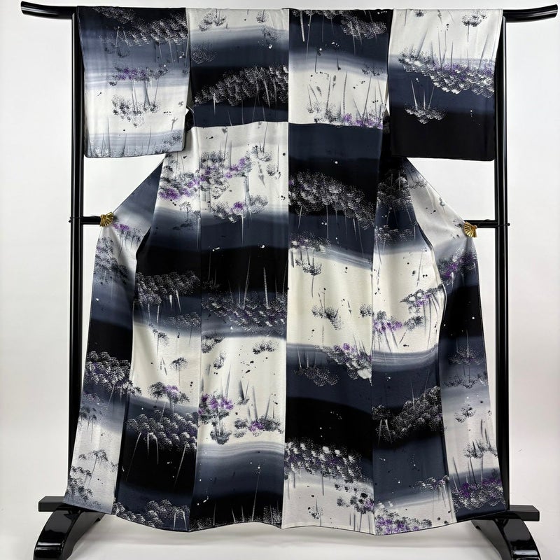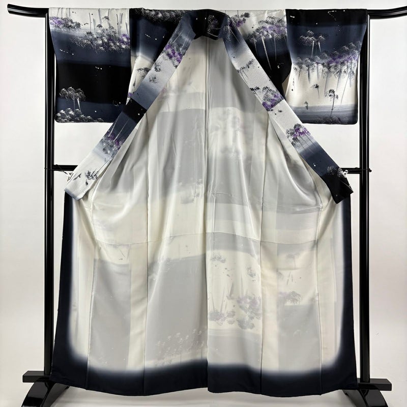 【小紋】 黒系 黒 秀品 A 約160cm~約169cm 裄丈66cm (M)size 袖丈48cm 9990-29990 美品 五万以下