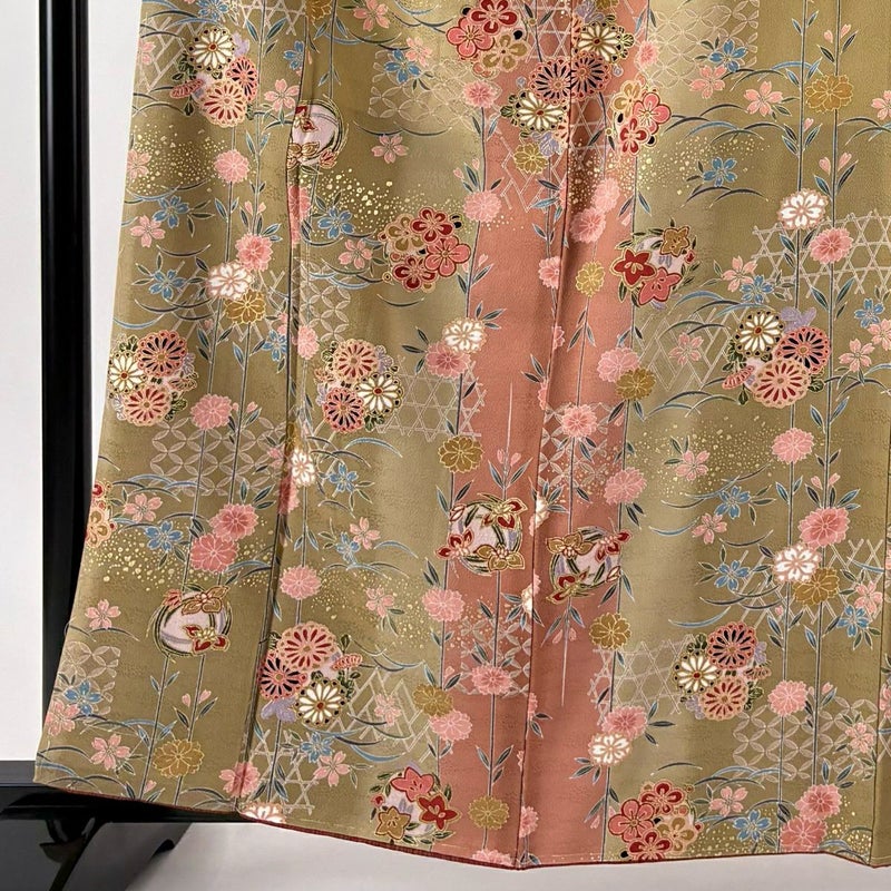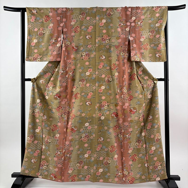 【小紋】 緑系 鶯色 秀品 A 約160cm~約169cm 裄丈63cm-64cm (M)size 袖丈50cm-60cm 9990-29990 美品 五万以下