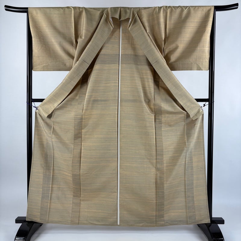 【着物ランク】秀品 【素材】正絹 【身丈】約161cm 【裄丈】約65.5cm 【袖丈】約46cm 【袖幅】約34cm 【前幅】約22.5cm 【後幅】約28.5cm 【サイズ】M 【着物仕立て】単衣 【着用時期】6/9月 【状態ランク】ランクB 【着物着用シーン】気軽なパーティー、観劇、食事会、正月、気軽なお茶会、街着