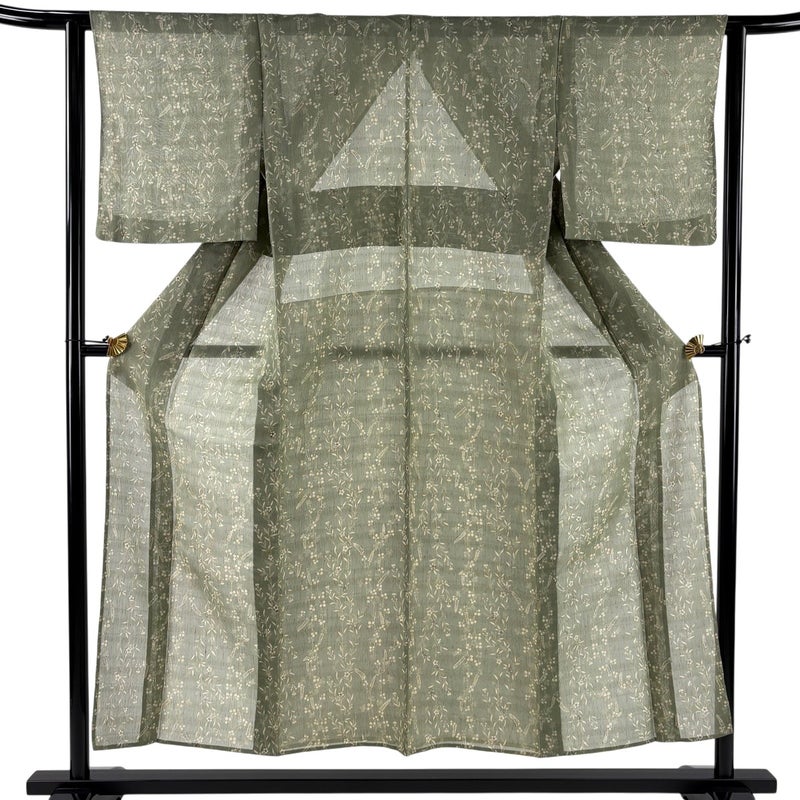 【着物ランク】秀品 【素材】正絹 【身丈】約152.5cm 【裄丈】約62cm 【袖丈】約46.5cm 【袖幅】約33cm 【前幅】約24.5cm 【後幅】約29cm 【サイズ】S 【着物仕立て】薄物 【着用時期】7~8月 【状態ランク】ランクA 【着物着用シーン】気軽なパーティー、観劇、食事会、正月、気軽なお茶会、街着