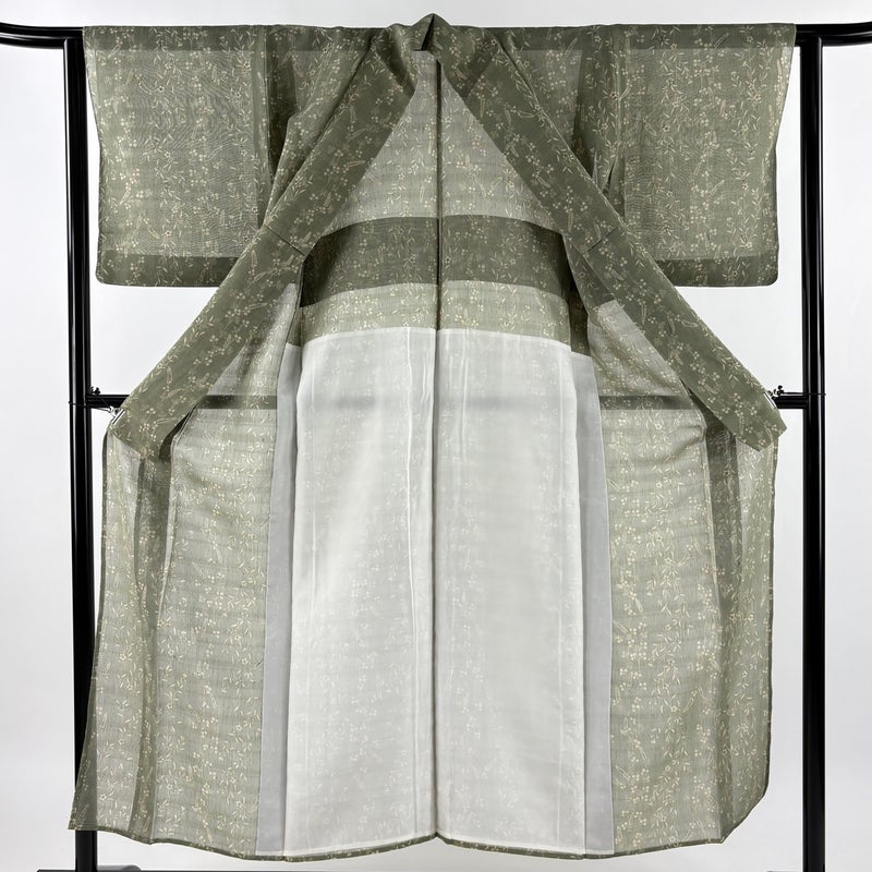 【小紋】 灰色系 灰緑 秀品 A 約150cm~約159cm 裄丈62cm以下 (S)size 袖丈46cm以下 9990-29990 美品 二万以下