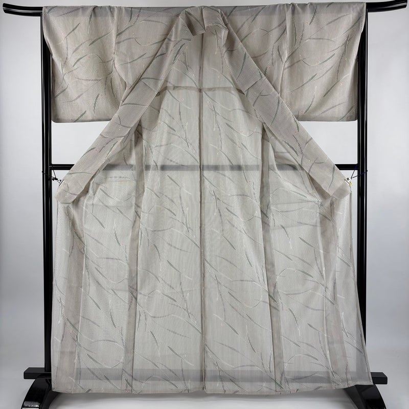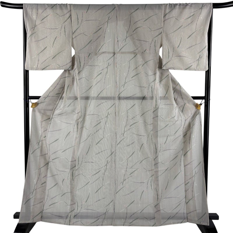 【着物ランク】秀品 【素材】化繊 【身丈】約165cm 【裄丈】約67.5cm 【袖丈】約48.5cm 【袖幅】約34cm 【前幅】約24.5cm 【後幅】約31cm 【サイズ】L 【着物仕立て】薄物 【着用時期】7~8月 【状態ランク】ランクB 【着物着用シーン】気軽なパーティー、観劇、食事会、正月、気軽なお茶会、街着