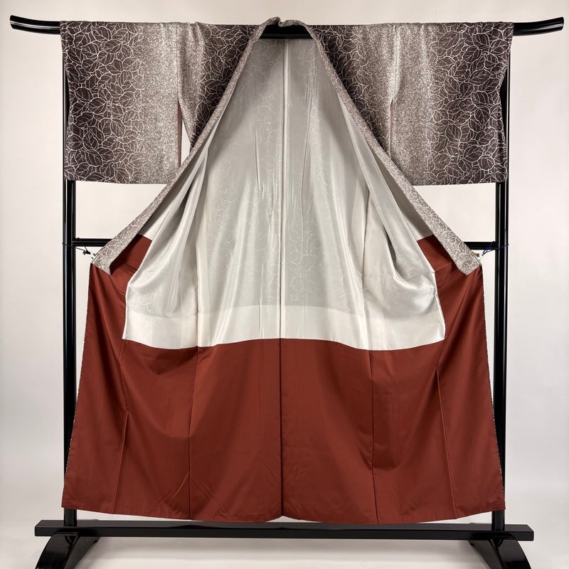 【着物ランク】秀品 【素材】正絹 【身丈】約156cm 【裄丈】約68.5cm 【袖丈】約49cm 【袖幅】約35cm 【前幅】約24cm 【後幅】約30.5cm 【サイズ】L 【着物仕立て】袷 【着用時期】10~5月 【状態ランク】ランクB 【着物着用シーン】気軽なパーティー、観劇、食事会、正月、気軽なお茶会、街着