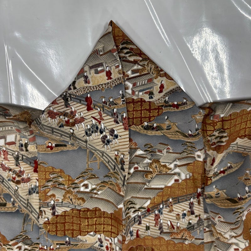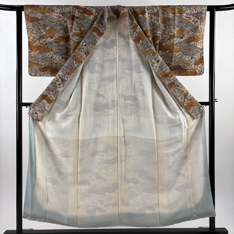 【着物ランク】秀品 【素材】正絹 【身丈】約153.5cm 【裄丈】約61cm 【袖丈】約47.5cm 【袖幅】約32cm 【前幅】約24cm 【後幅】約28.5cm 【サイズ】S 【着物仕立て】袷 【着用時期】10~5月 【状態ランク】ランクA 【着物着用シーン】気軽なパーティー、観劇、食事会、正月、気軽なお茶会、街着