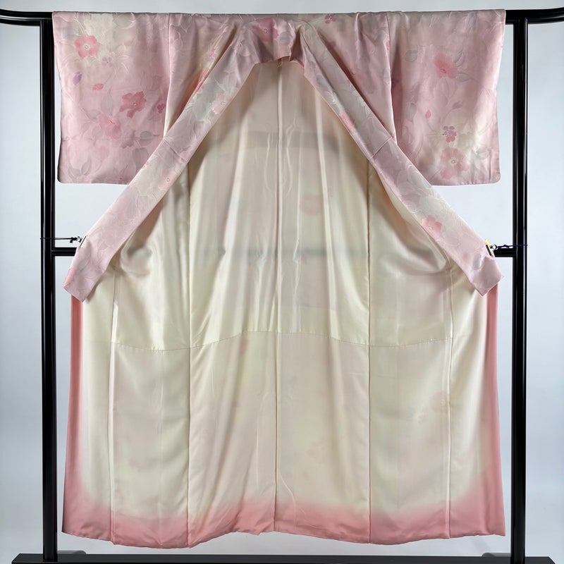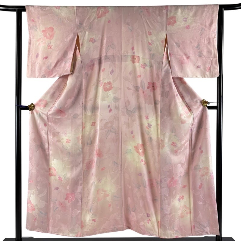 【着物ランク】秀品 【素材】正絹 【身丈】約152.5cm 【裄丈】約61.5cm 【袖丈】約48cm 【袖幅】約32cm 【前幅】約23cm 【後幅】約28cm 【サイズ】S 【着物仕立て】袷 【着用時期】10~5月 【状態ランク】ランクB 【着物着用シーン】気軽なパーティー、観劇、食事会、正月、気軽なお茶会、街着