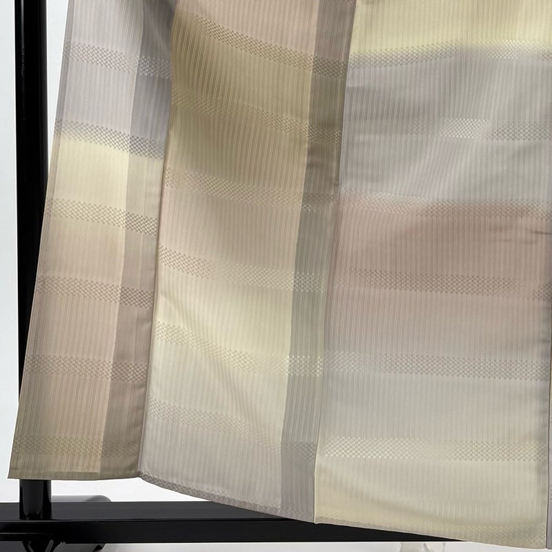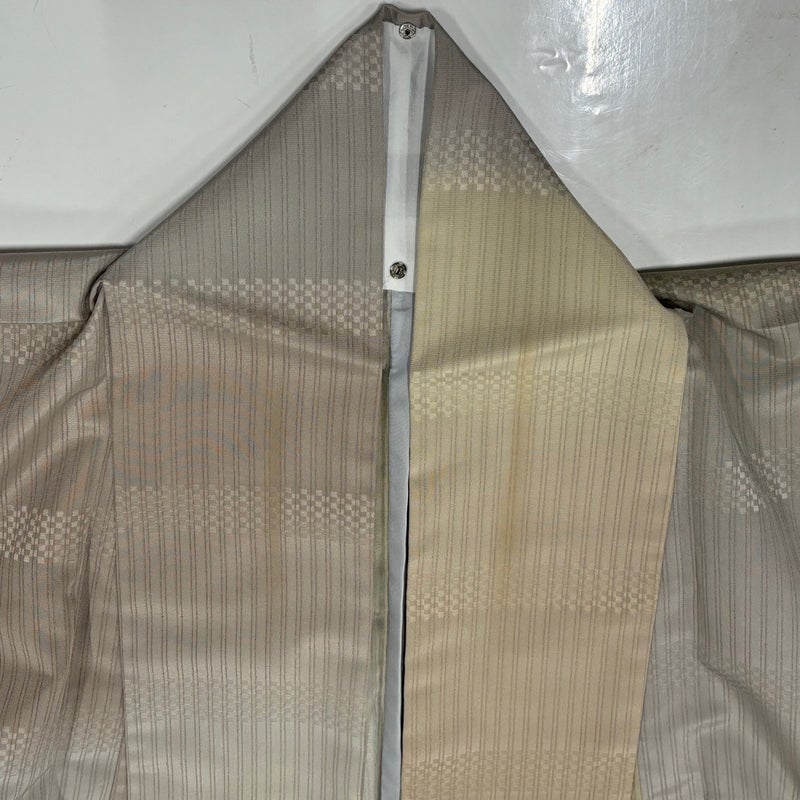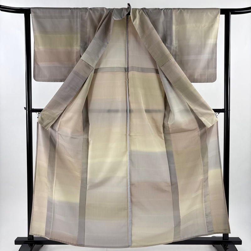 【着物ランク】秀品 【素材】正絹 【身丈】約159.5cm 【裄丈】約61cm 【袖丈】約49.5cm 【袖幅】約31.5cm 【前幅】約24cm 【後幅】約29.5cm 【サイズ】S 【着物仕立て】単衣 【着用時期】6/9月 【状態ランク】ランクB 【着物着用シーン】気軽なパーティー、観劇、食事会、正月、気軽なお茶会、街着
